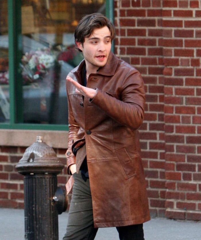 Ed Westwick Brown Leather Trench Coat