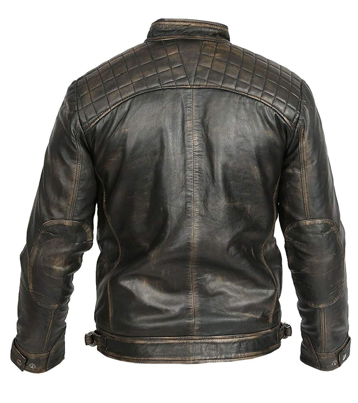 Men Distressed Cow Men Motorcycle Leather Jacket
