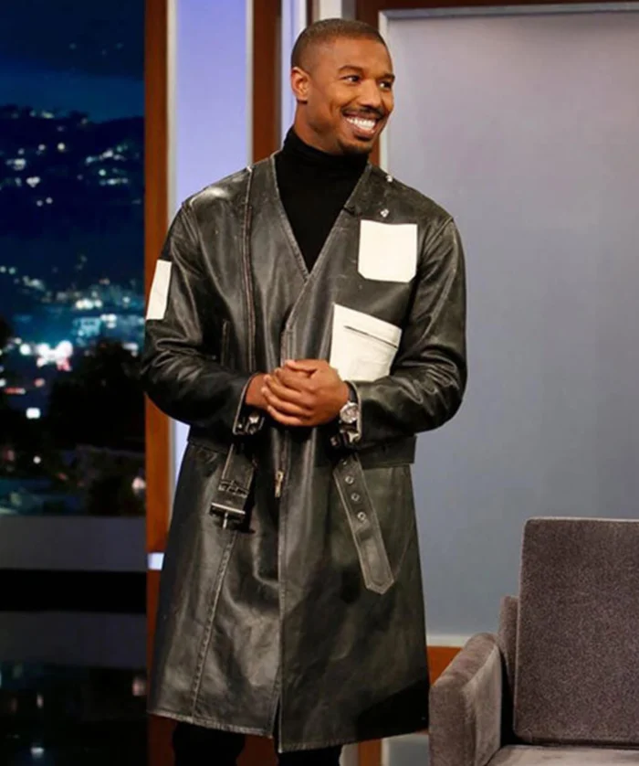 Michael B. Jordan Black Leather Long Coat