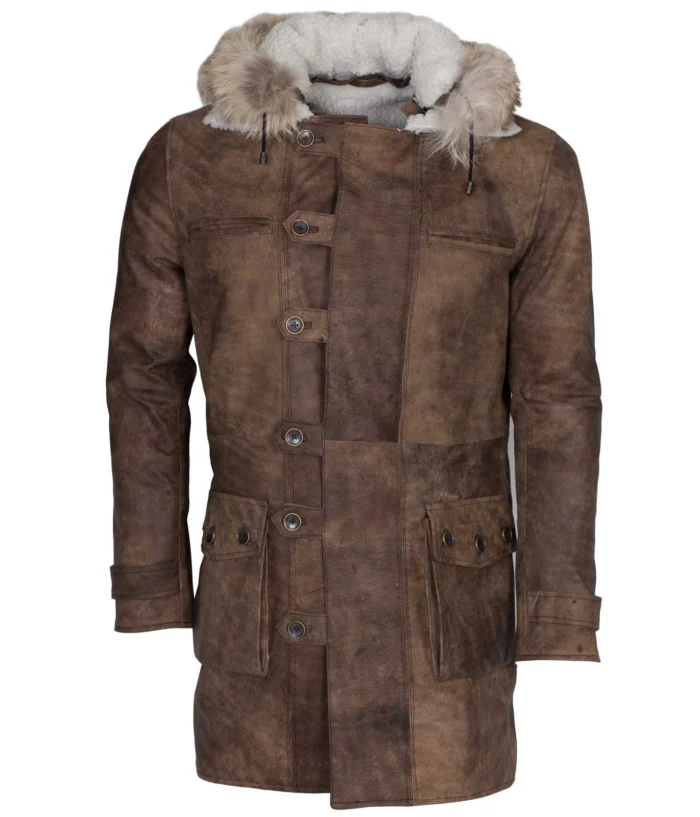 Real Fox Fur Detachable Hood Bane Leather Coat is a customized leather coat from our expert designer. They customized this Detachable Hood Bane Leather coat by adding a hood with winter coat. This Fur Bane Leather Coat is made from the finest quality distressed leather with real fox fur hood that give comfort to our value customer and its best winter coat of all time. You can also wear this coat as a Halloween costume to represent Bane.