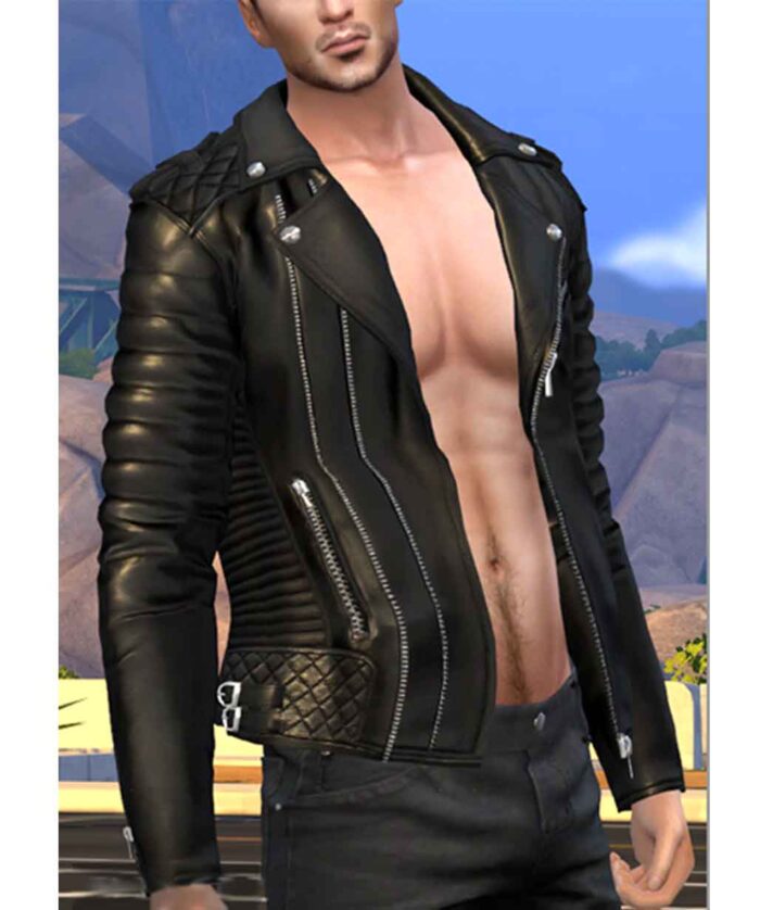 Sims 4 Black Mens Motorcycle Leather Jacket
