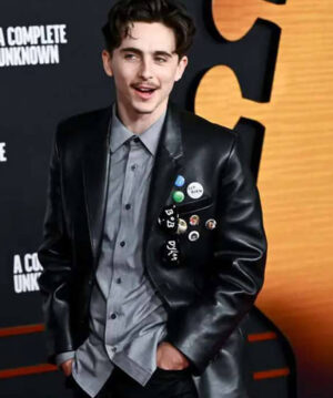 Timothée Chalamet A Complete Unknown Premiere Black Leather Blazer
